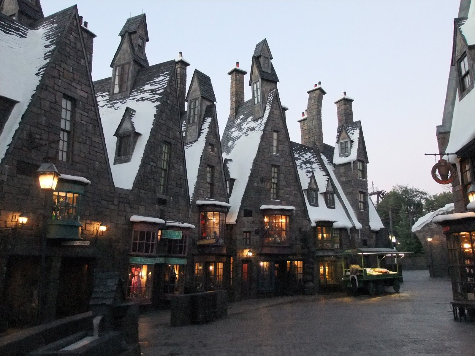 Hogsmeade, um vilarejo só de bruxos, que oferece inúmeras lojas de produtos para magia e pubs com cerveja amanteigada. (Foto: reprodução da internet)Criado pela escritora J. K. Rowling, Hogsmeade é o único vilarejo habitado somente por bruxos e o mais próximo do castelo de Hogwarts, a cobiçada escola para bruxos frequentada por Harry Potter. A Rua Principal da pequena vila reúne lojas que comercializam produtos para as magias e muitos pubs, que vendem a famosa cerveja amanteigada. Entre os pubs, destaque para o Três Vassouras, que também funciona como estalagem, sendo o ambiente muito acolhedor, limpo e quente.