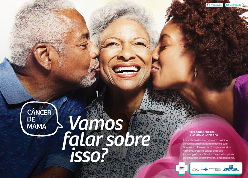 Este ano, o tema da campanha do Outubro Rosa no INCA – Instituto Nacional do Câncer – é ‘Câncer de mama: vamos falar sobre isso?”, que visa chamar a atenção das mulheres sobre a importância de conhecer seu próprio corpo e assim notar qualquer alteração suspeita, além de informar que mulheres com idade acima de 50 anos devem realizar mamografias periodicamente.