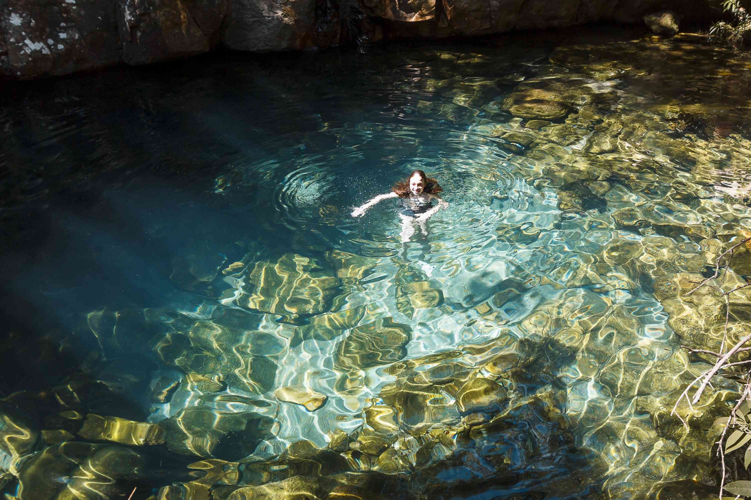 - nadando na Cachoeira do Garimpão;