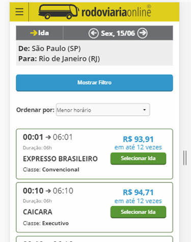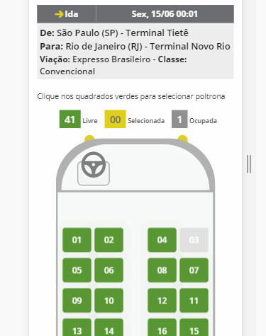 Escolha a opção de horário, valor e classe que melhor lhe atende