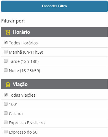 Você pode utilizar os filtros para exibir apenas as opções que melhor lhe atendem e facilitar a sua escolha.