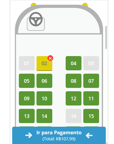 Para selecionar a poltrona desejada basta clicar em cima dela. Lembrando que as opções disponíveis encontram-se pintadas de verde.