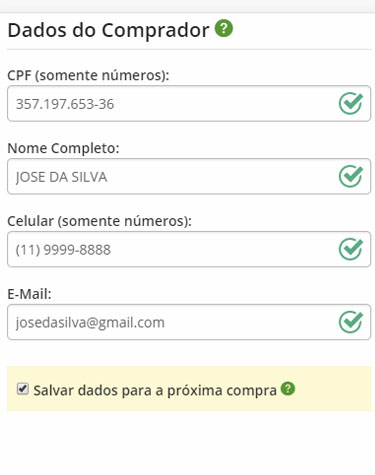 Insira os dados do comprador. É obrigatório que o comprador tenha CPF e informe corretamente.