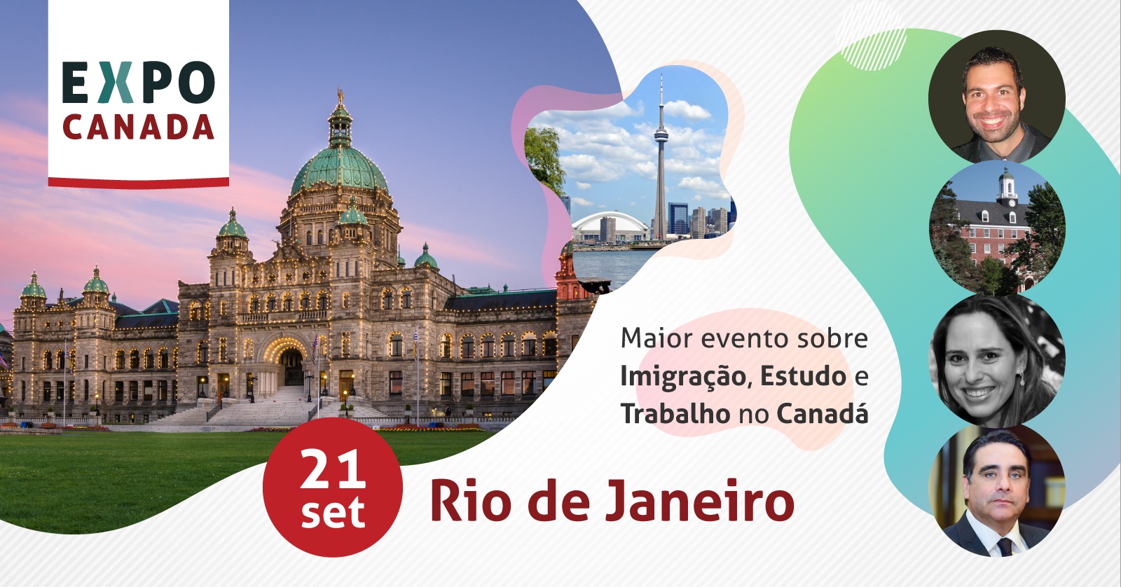 A ExpoCanadá acontece no Rio de Janeiro, no dia 21 de setembro, no Everest Rio Hotel, localizado na rua Prudente de Morais, 1117, no bairro de Ipanema. A entrada é gratuita e o horário de funcionamento é das 13 às 20 horas. Para quem quer assistir as palestras, o ingresso custa R$ 80. Quem inicia o evento é Felipe Mafra que fala “Imigração Através dos Estudos e Planejamento para chegar no Canadá”, Ed Santos fala sobre os processos imigratórios, “Express Entry / O passo a passo da Imigração Processos, Prazos, Custos”. Há também o Painel sobre Colleges Públicos com a participação de Colleges Seneca, Sheridan, Conestoga Niagara College e Mohawk, falando sobre a estrutura, programas e mercado de trabalho. Ilana Belaciano apresenta um painel com perguntas e respostas sobre intercâmbios de inglês, férias, high school e colleges. E, para finalizar, Ed Santos conta sua história de sucesso em “Sucesso Financeiro – Como chegar ao primeiro milhão no Canadá”.
