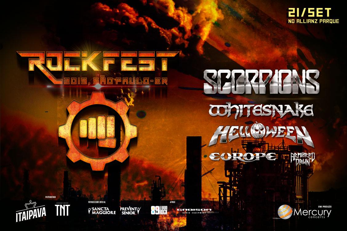 A primeira edição do ROCKFEST acontecerá no dia 21 de setembro no Allianz Parque, em São Paulo. A proposta do festival é que cada atração representa um país diferente: Scorpions (Alemanha), Whitesnake (Inglaterra), Helloween (Alemanha), Europe (Suécia), além dos brasileiros do Armored Dawn. A abertura dos portões será as 14 horas, mas o primeiro show começa às 16 horas, com Armored Dawn. Europe é a próxima a subir ao palco, às 17h15, seguida por Helloween às 18h45 e Whitesnake as 20h15. Scorpions fecha o evento e o show tem início às 22 horas.